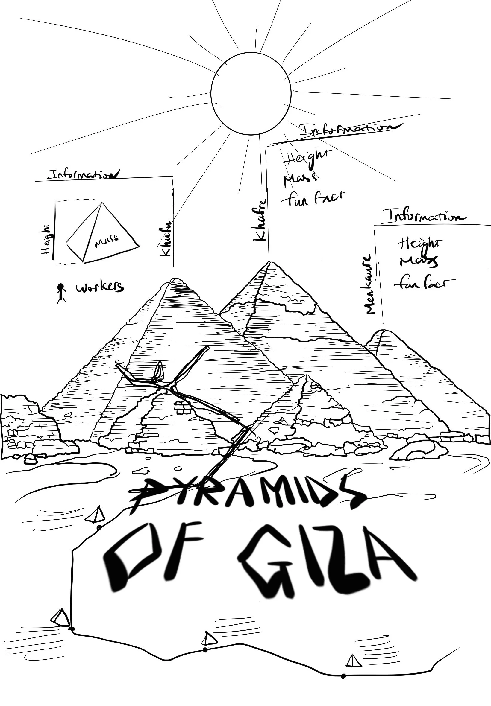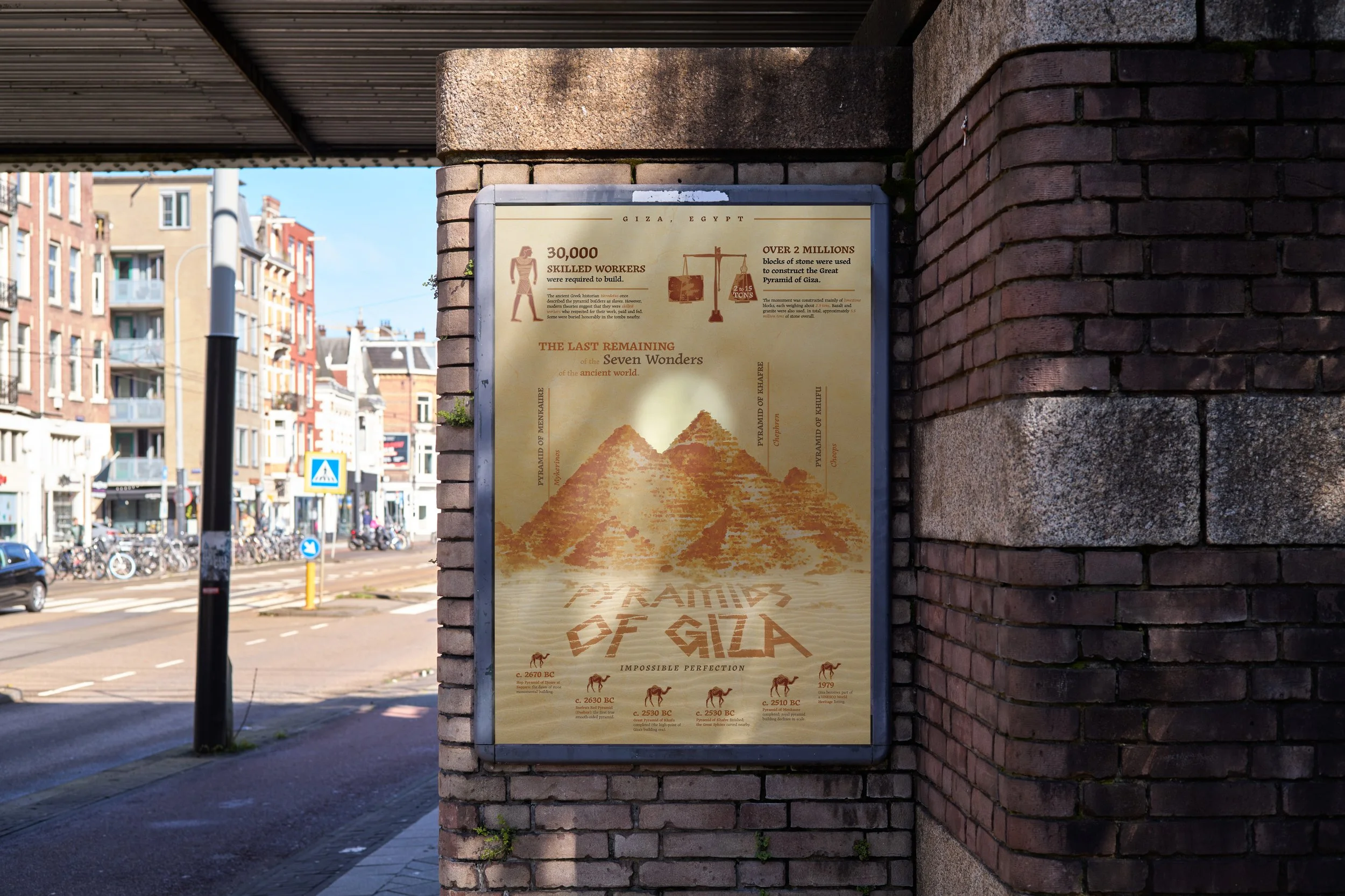 Remarkable Landmarks is an infographic poster about the Great Pyramids of Giza. With the target audience are tourist, the poster aims to introduce the history of the three main pyramids at Giza.